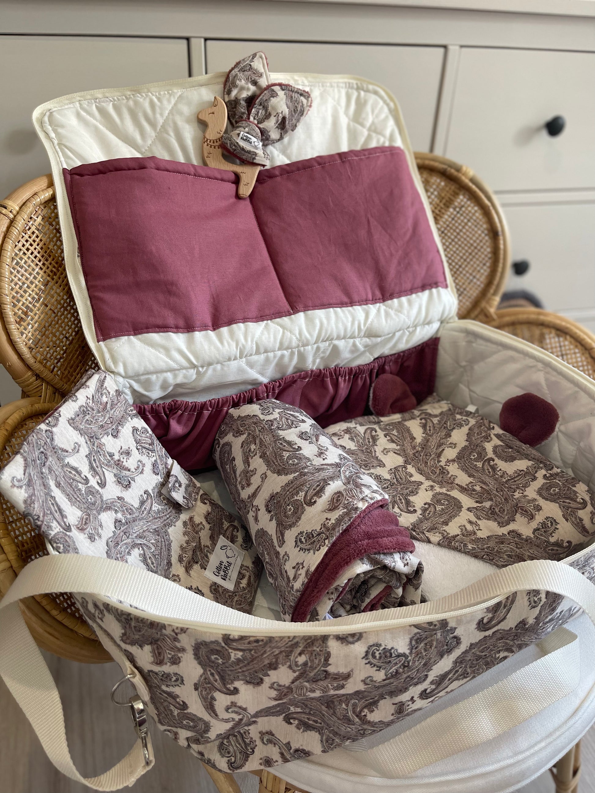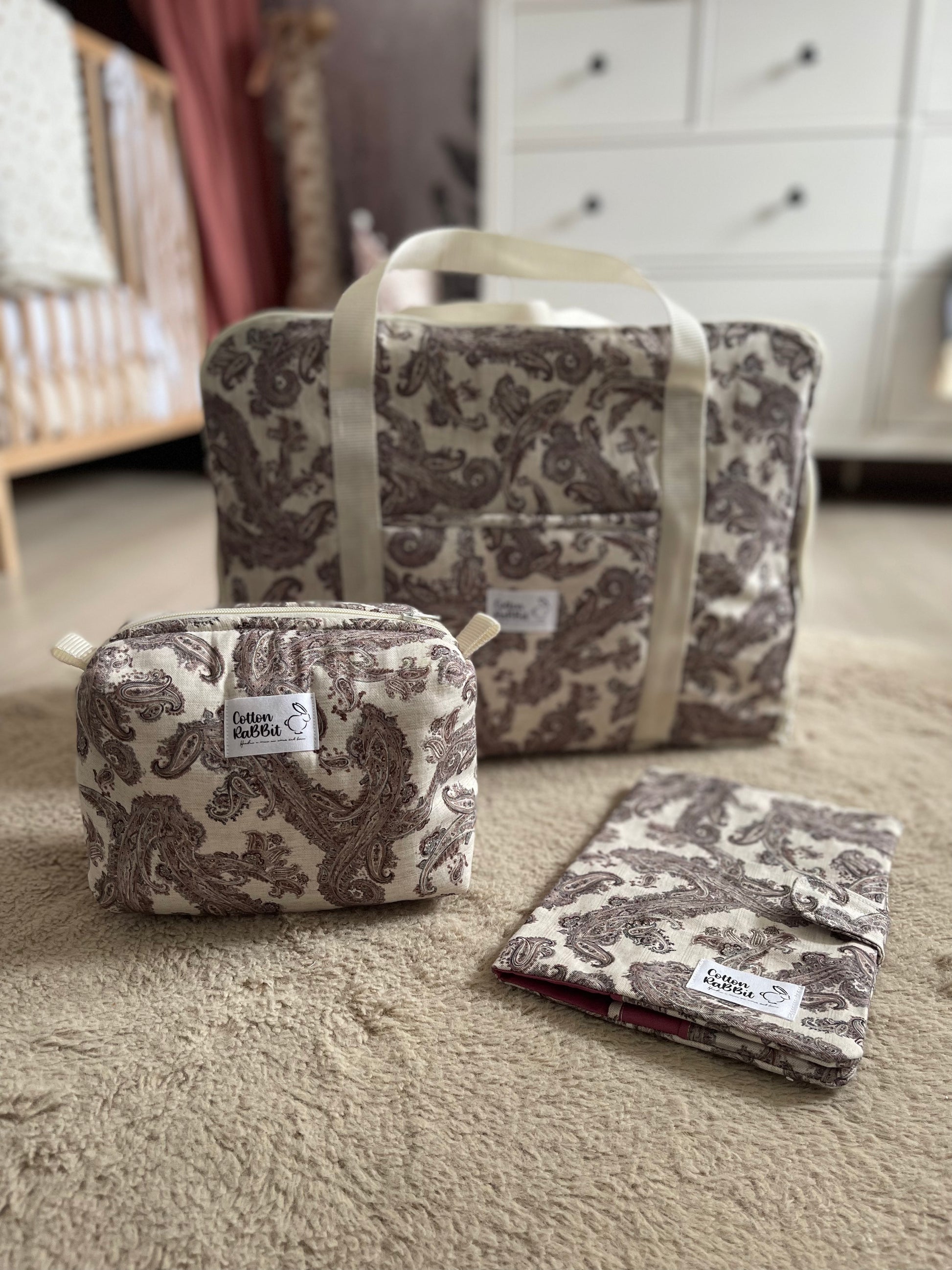 Es ideal como maleta de hospital, así como maleta de viaje para el bebé. Puedes encontrar el porta documentos y el neceser compañero.
