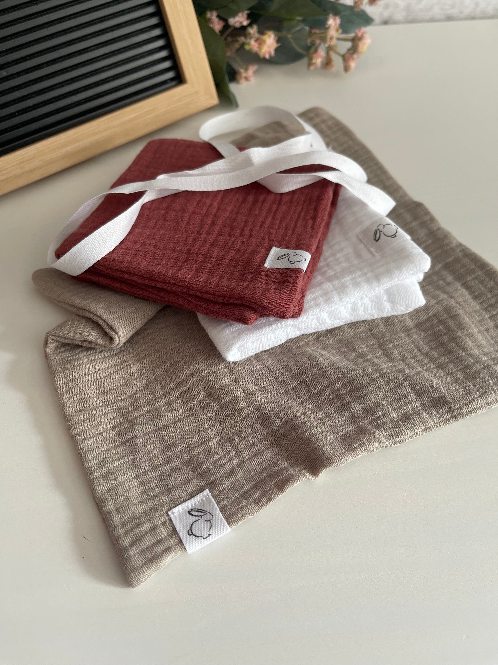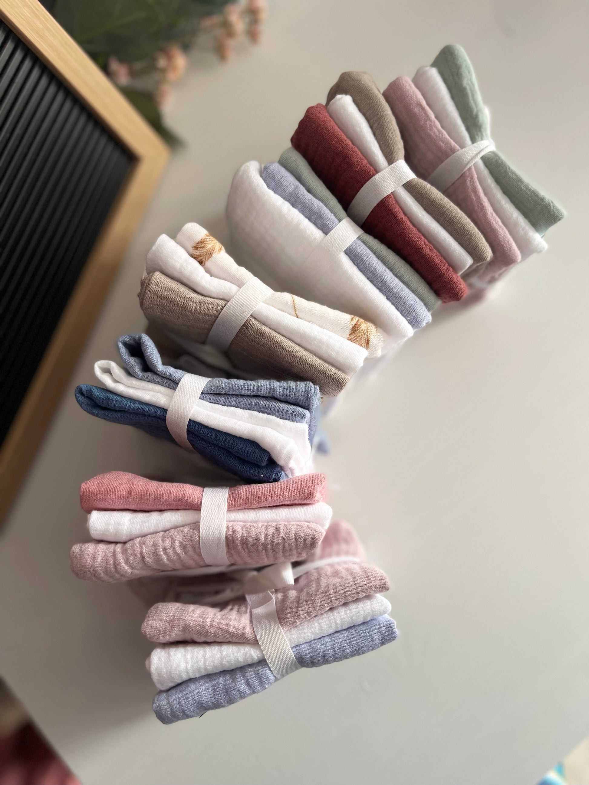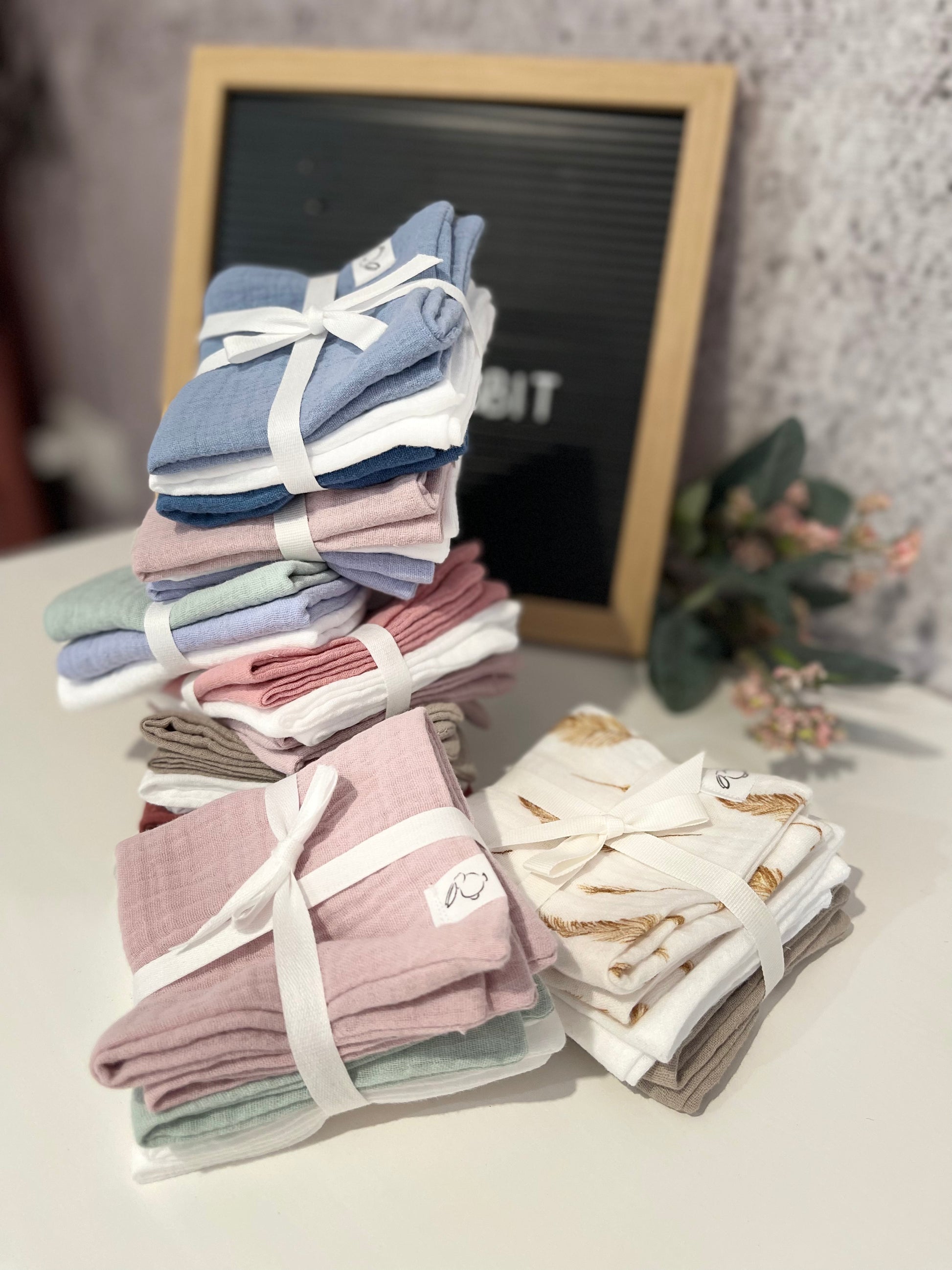 Son perfectas para usar a modo de babero, como babita para el moisés o carro y para secar la zona de pañal después de usar las toallitas.