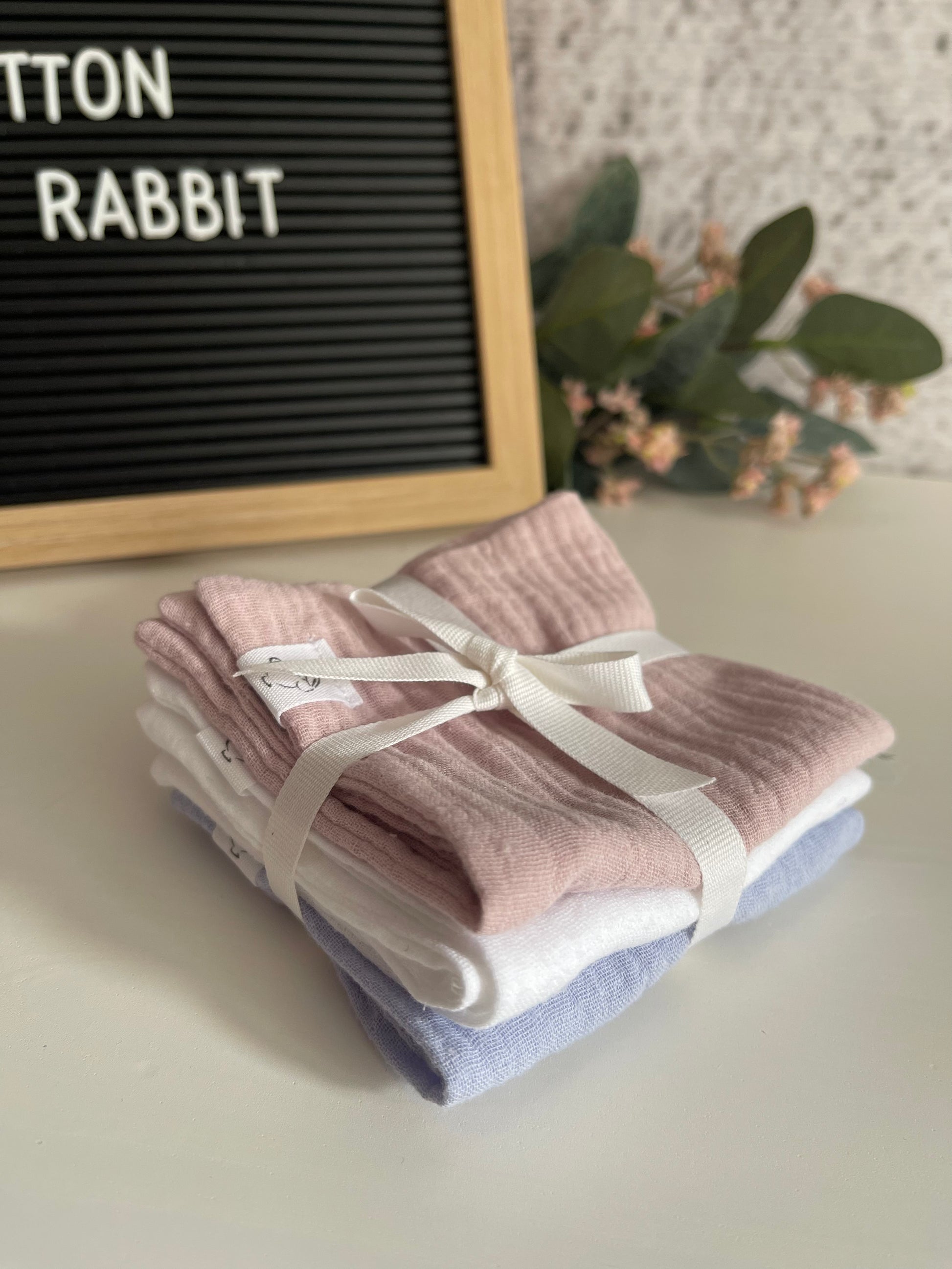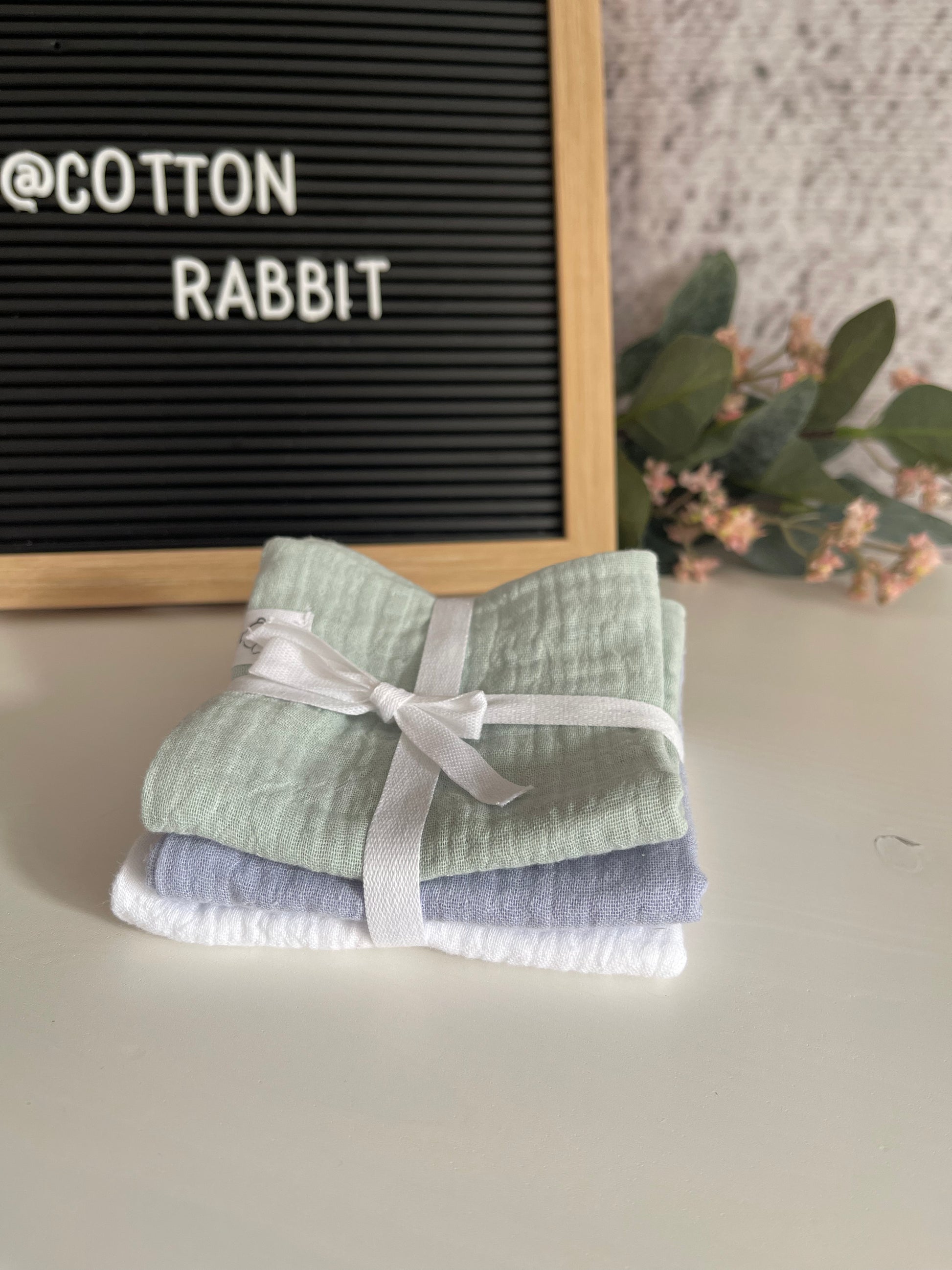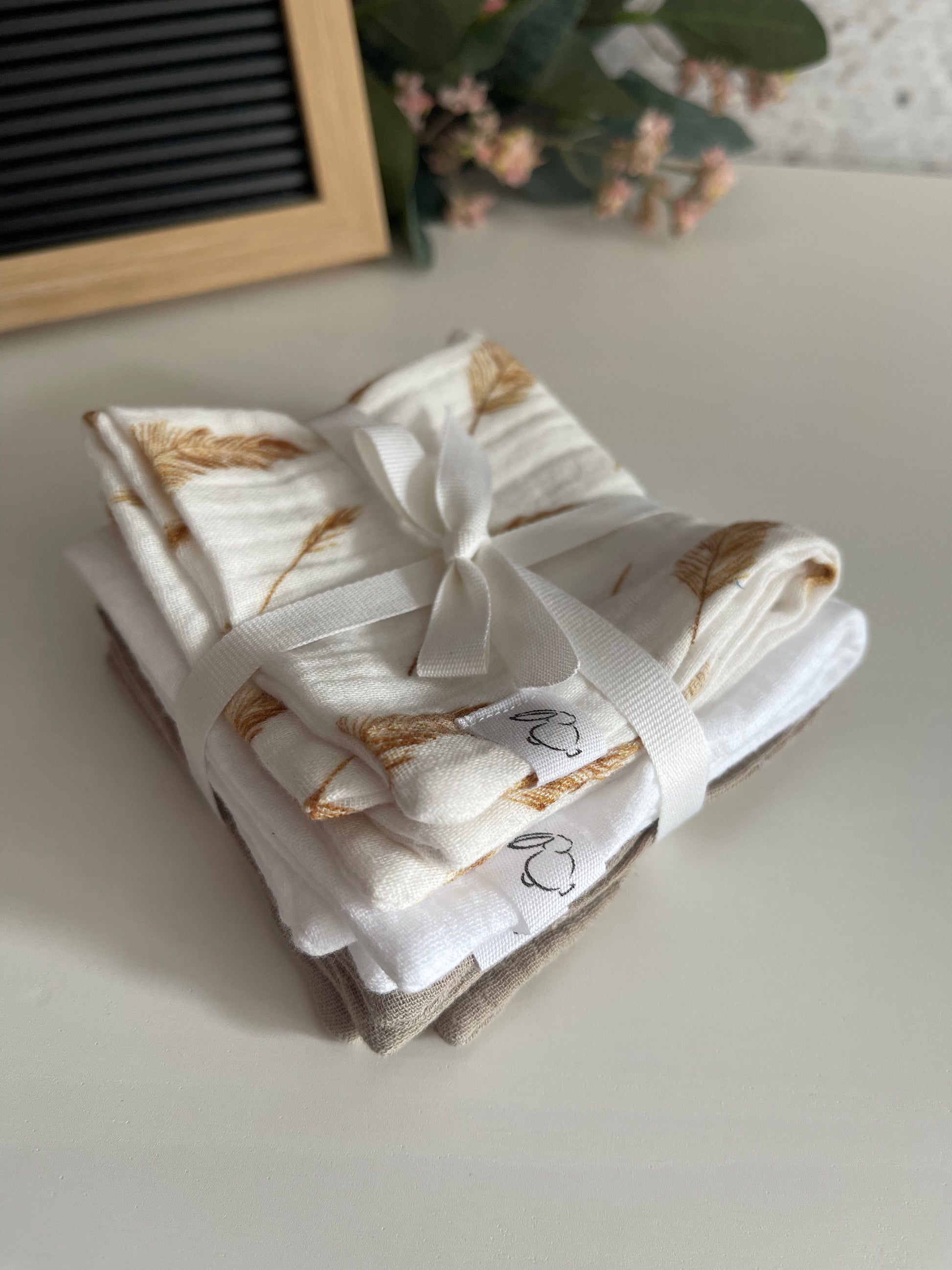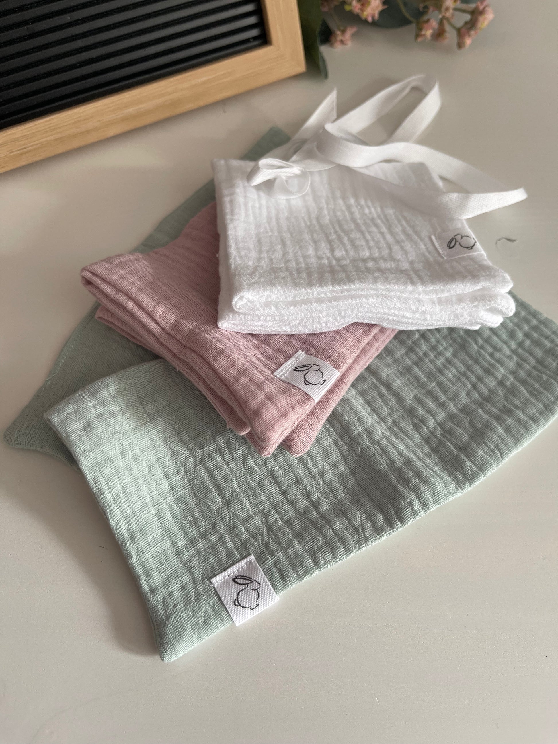 Pack de tres minimuselinas de bambula orgánica doble capa.